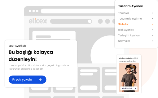 Gibi avantajlar elde eder. Bu da ancak e-ticaret yazılımı tecrübeli ekip çalışması ile yapıldığında mümkün olur. Eticex birçok başarılı projeye imza atmış, güvenilir ve güçlü kadrosu ile elektronik ticaret projelerinde de başarılarını sürdüren Türk firmasıdır. 7/24 müşteri desteği sağlayan Eticex e-ticaret paketleri, markalaşma yolunda ilk adımlarını atan firmalar için, gelişmiş öneriler sunar.
