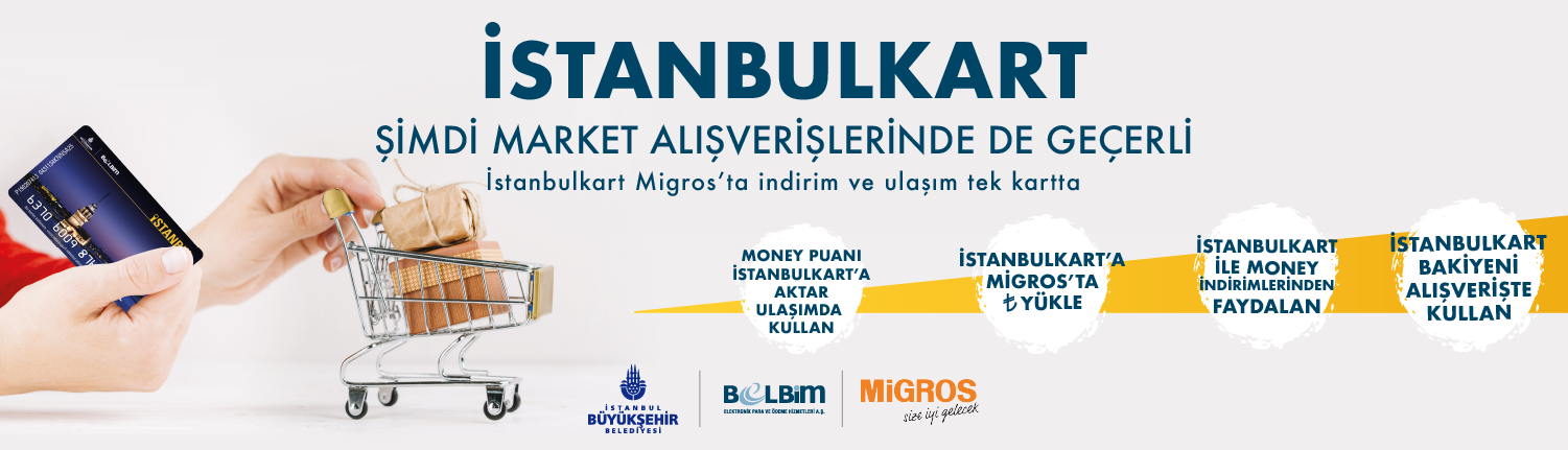 İstanbul Büyükşehir Belediyesi iştirak şirketi BELBİM AŞ ile MİGROS işbirliğiyle hayata geçen proje ile birlikte; İstanbul’daki tüm Migros, Migros Jet ve 5M mağazalarından nakit ile herhangi bir ek bedel ödemeksizin İstanbulkart satın alma ve TL yükleme işlemleri yapılabilecektir.