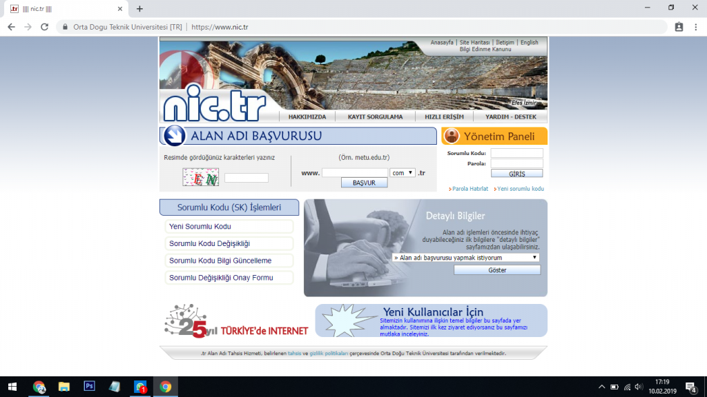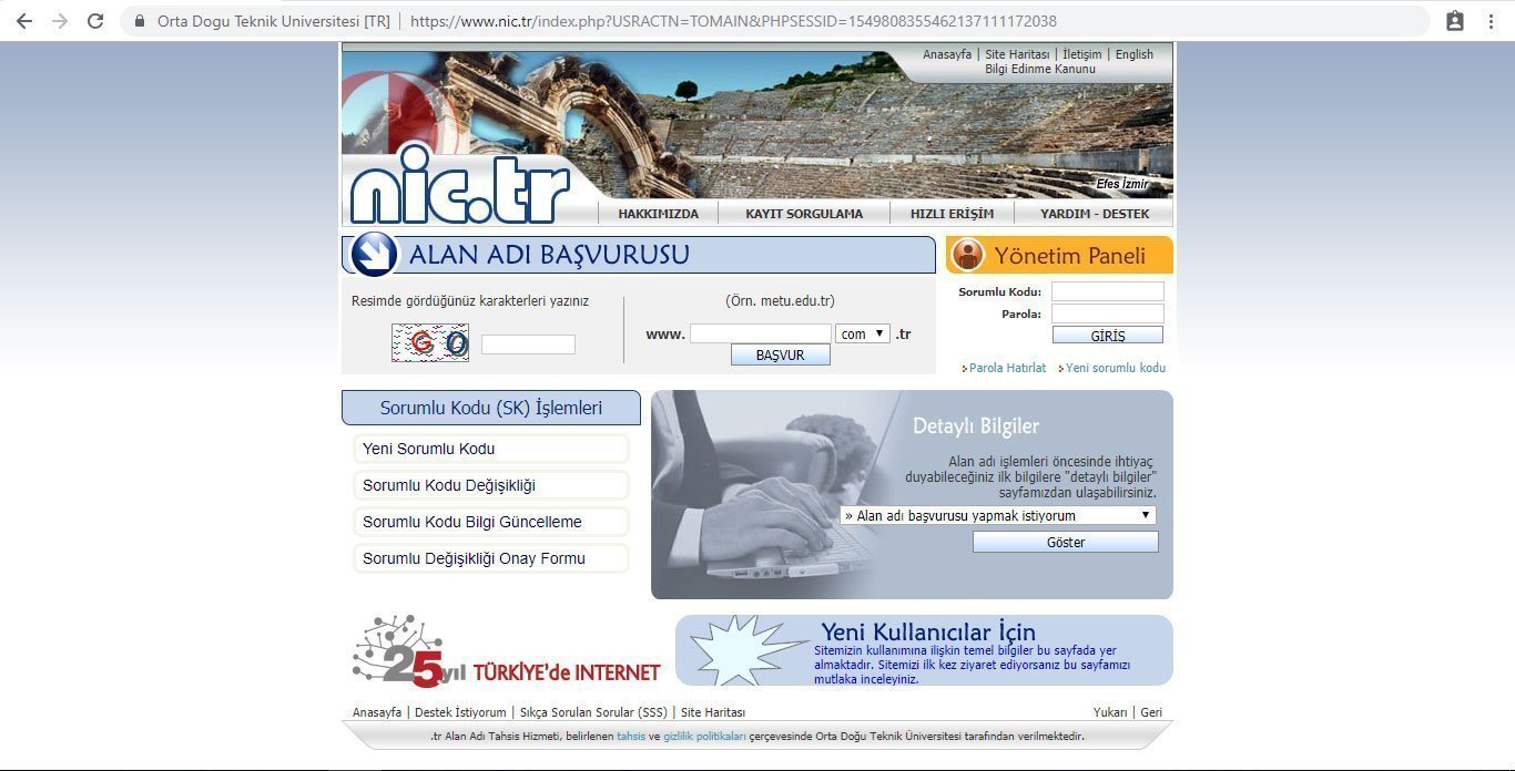 com.tr alan adı yazmanı ODTÜ ‘dür ve web sitesi çok zor ve görseli çok kötü olsa da buna takılmayın. Alan adı yazmanı ise .com , .org gibi uzantıyı yazma yetkisine sahip değer anlamına gelir. Yani siz hangi firmadan satın alırsanız alın, satın aldığınız firma com.tr alan adını nic.tr firmasından satın almak zorundadır. nic.tr 2019 yılı için geçerli isimsoyisim.com.tr domaini 12₺ ‘ye firmaadi.com.tr ‘yi ise 25₺ ye satmaktadır.